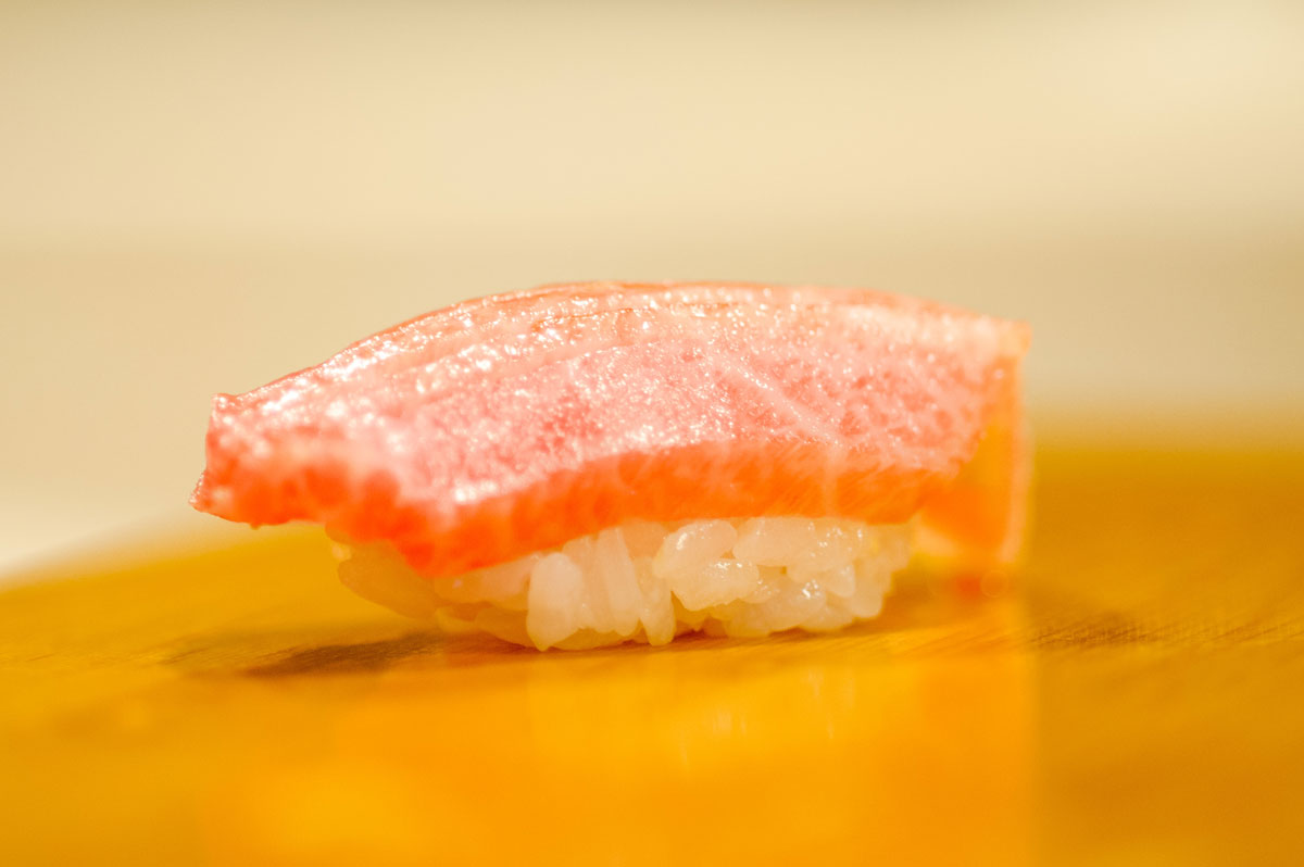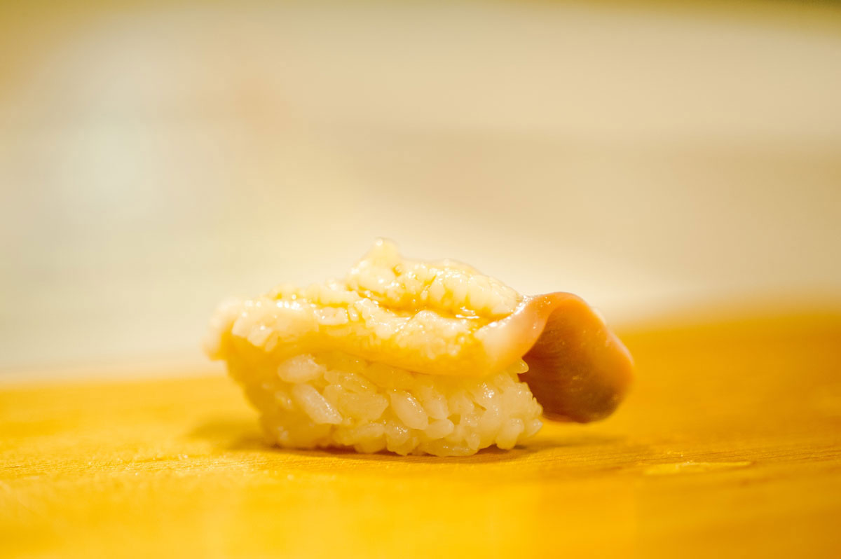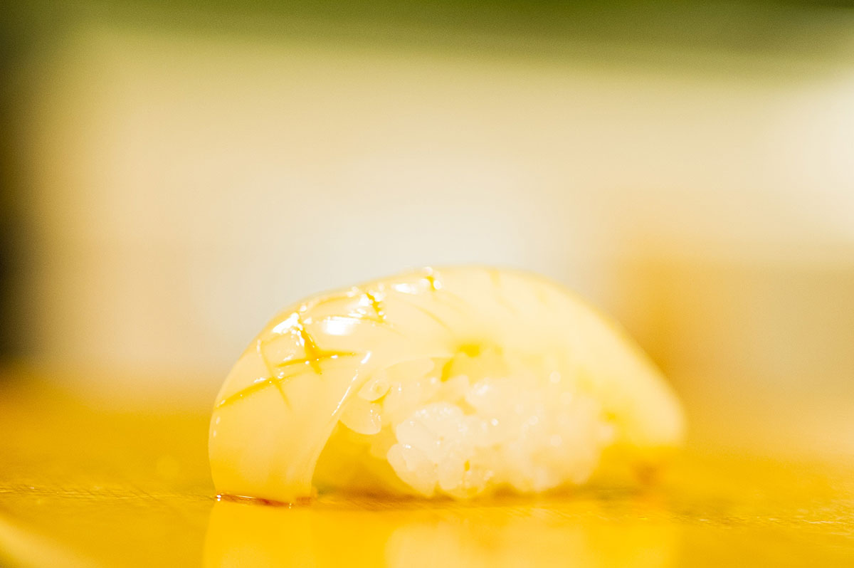 修行時代から「一期一会、どんな小さなことにも決して手を抜かない」をモットーに、厳選した食材の旨味を引き出す仕事を施し、お客様の好みに合わせて握りの力加減を調整するなど、きめ細やかな気遣いを欠かさぬよう心がけております。